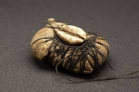 La photo de l'objet ne nous apprend pas grand chose. On croit y distinguer un coquillage attaché à un petit paquet par une ficelle embobinée.
