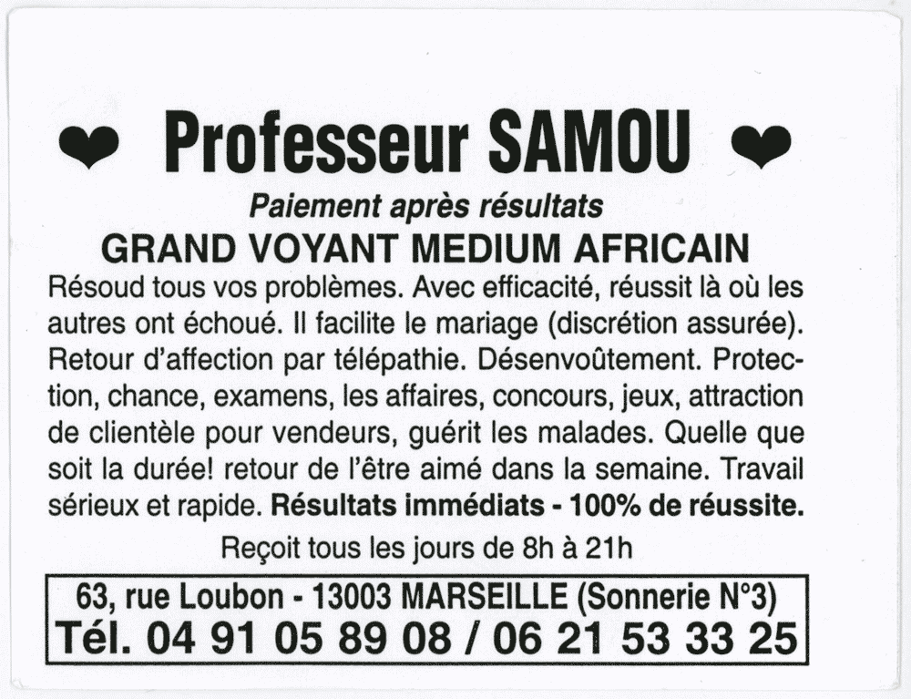 "Ses dons divinatoires et héréditaires lui ont donnés une réputation internationale. De hautes personnalités le consultent en toute confiance."